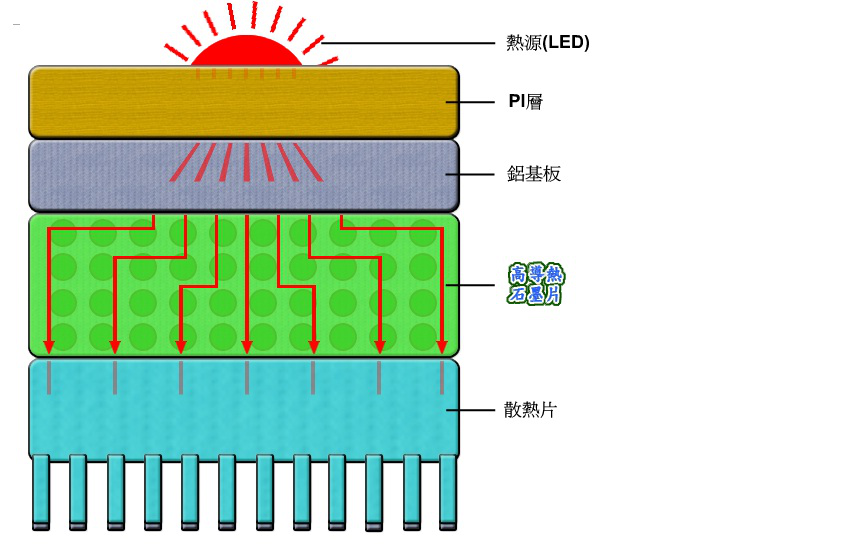 片于X-Y軸之導(dǎo)熱速度不夠快,以致僅有熱源中心附近的鰭片能發(fā)揮散熱功能。